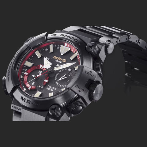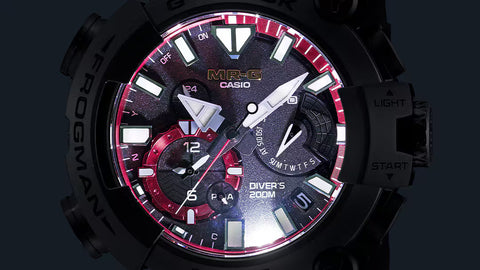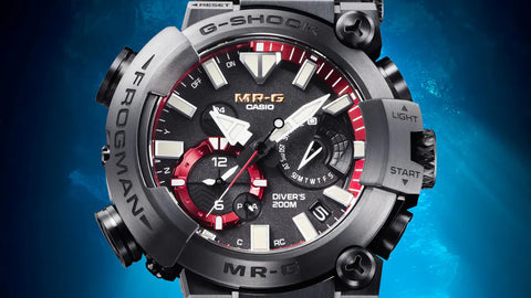 This MR-G diver’s watch takes the unique asymmetrical design, screw-lock case back and distinctive diving frog character — which were so popular when FROGMAN came out back in 1993 — to a whole new level.