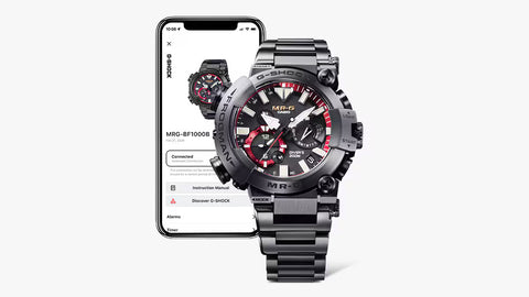 The dial ring and inset dial ring feature accents in the G-SHOCK brand colour of red, creating a vibrant contrast with the base tone of black to express both strength and beauty. Red vapour deposition is applied to the case back’s sapphire crystal as well.