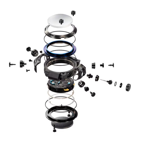 Lightweight, rust-resistant titanium is used for key exterior components — from the case, bezel, and case back, to the crown, buttons, and screws. The watch is made up of an intricate combination of over 70 exterior components, achieving a powerful and beautiful form. A protective structure offers face-guarding functionality with buffers made of fluoro rubber installed in the space between the bezel and case. A deep-layer hardening process and diamond-like-carbon (DLC) coating provide even greater strength and abrasion resistance. The case incorporates a crown and case back that both feature a screw-lock construction. These and other features throughout the design keep the watch air-tight to ensure water resistance for diving.