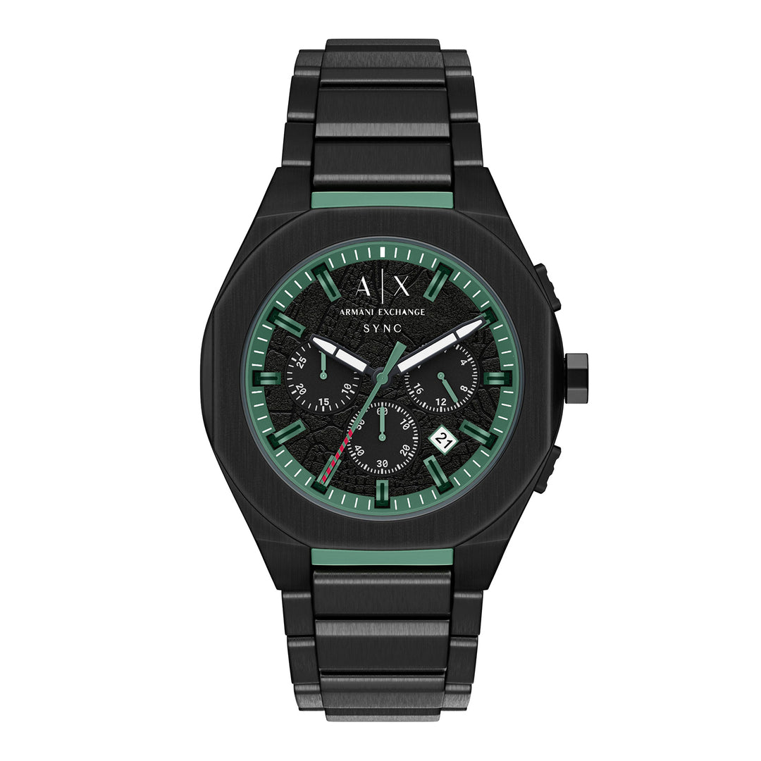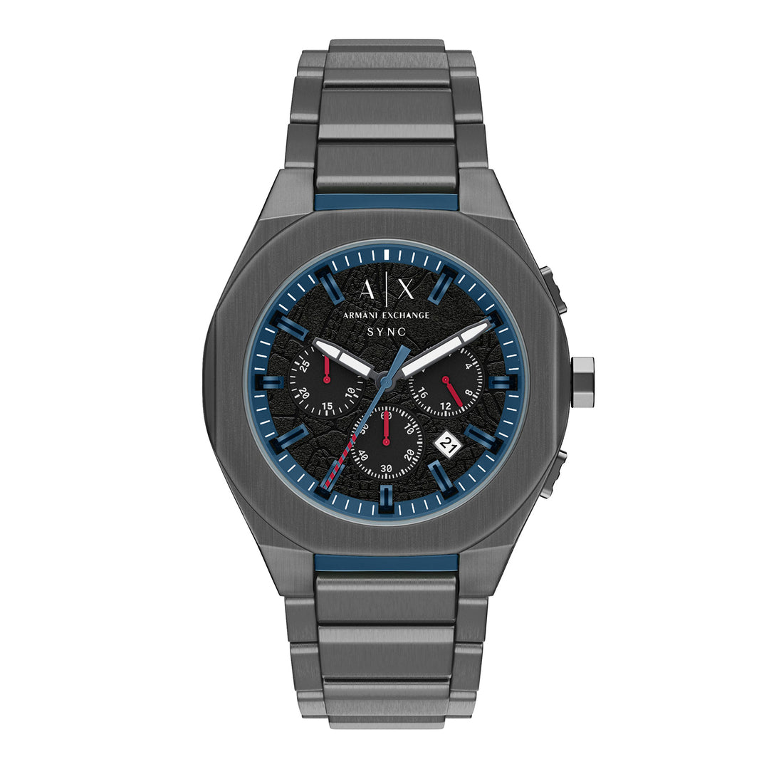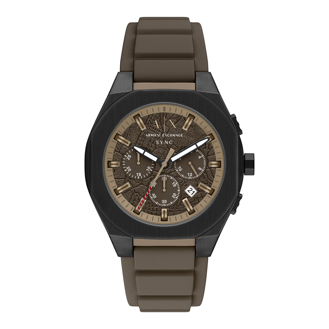 Selected Armani Exchange chronograph watches include stopwatch functionality, allowing users to measure elapsed time in addition to standard timekeeping.