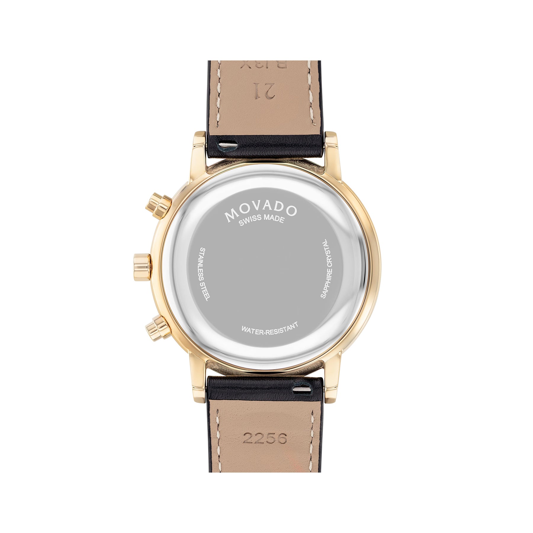 Movado Men's Black Dial Watch Gold Tone Case Quartz