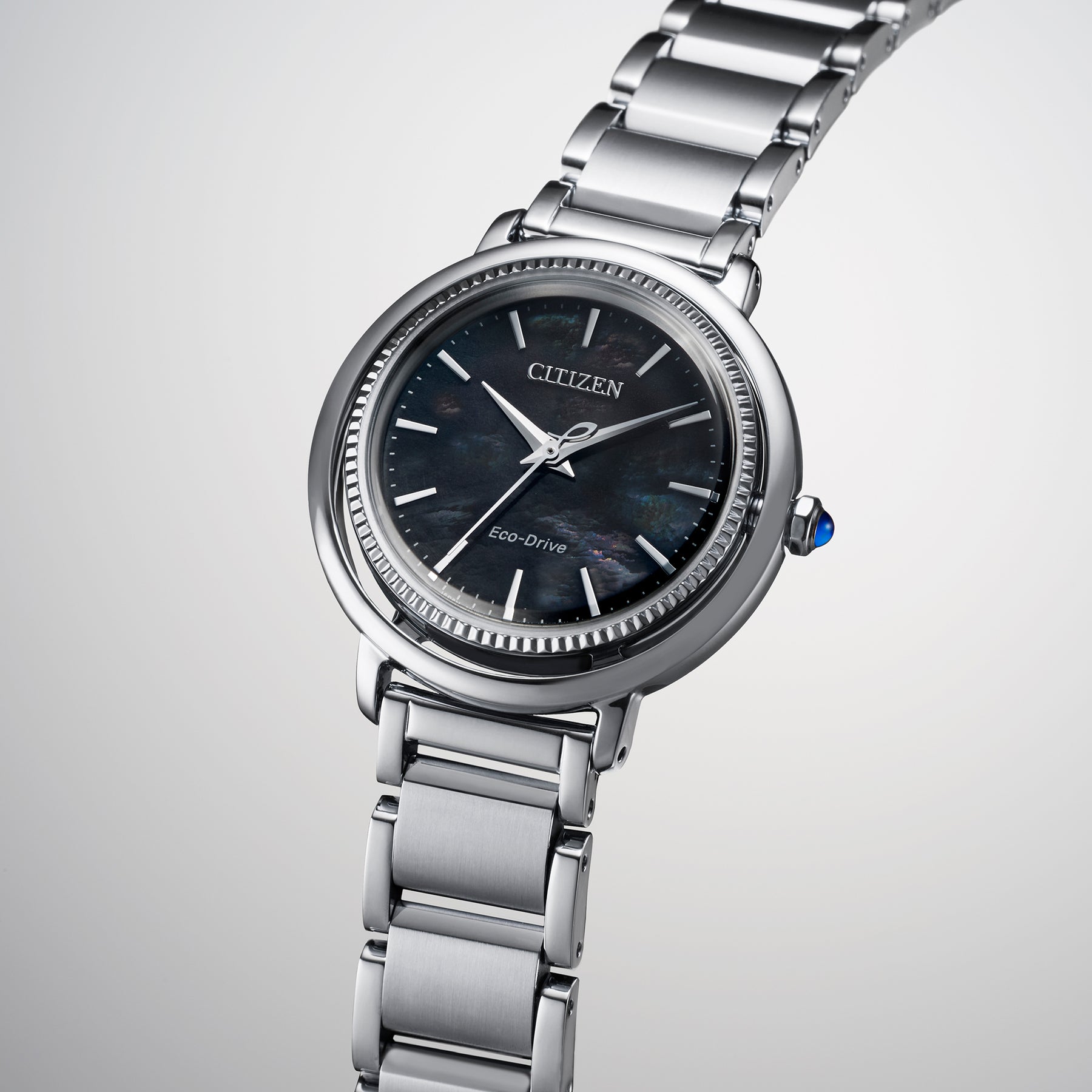 Classic lines and hints of romance make this newest piece to our ladies' collection; the CITIZEN L Arcly is a glamorous addition. Inspired by the sunrise, this watch features a sleek design that combines the gentle, curving lines of the stainless-steel case with lustrous mother-of-pearl dial to showcase the delicate beauty of the sunrise itself. Continuing to provide sustainable watches, the CITIZEN L collection uses the elegant designs to reflect the beauty of the planet while evoking the feelings of joy and happiness every time you look at your wrist.