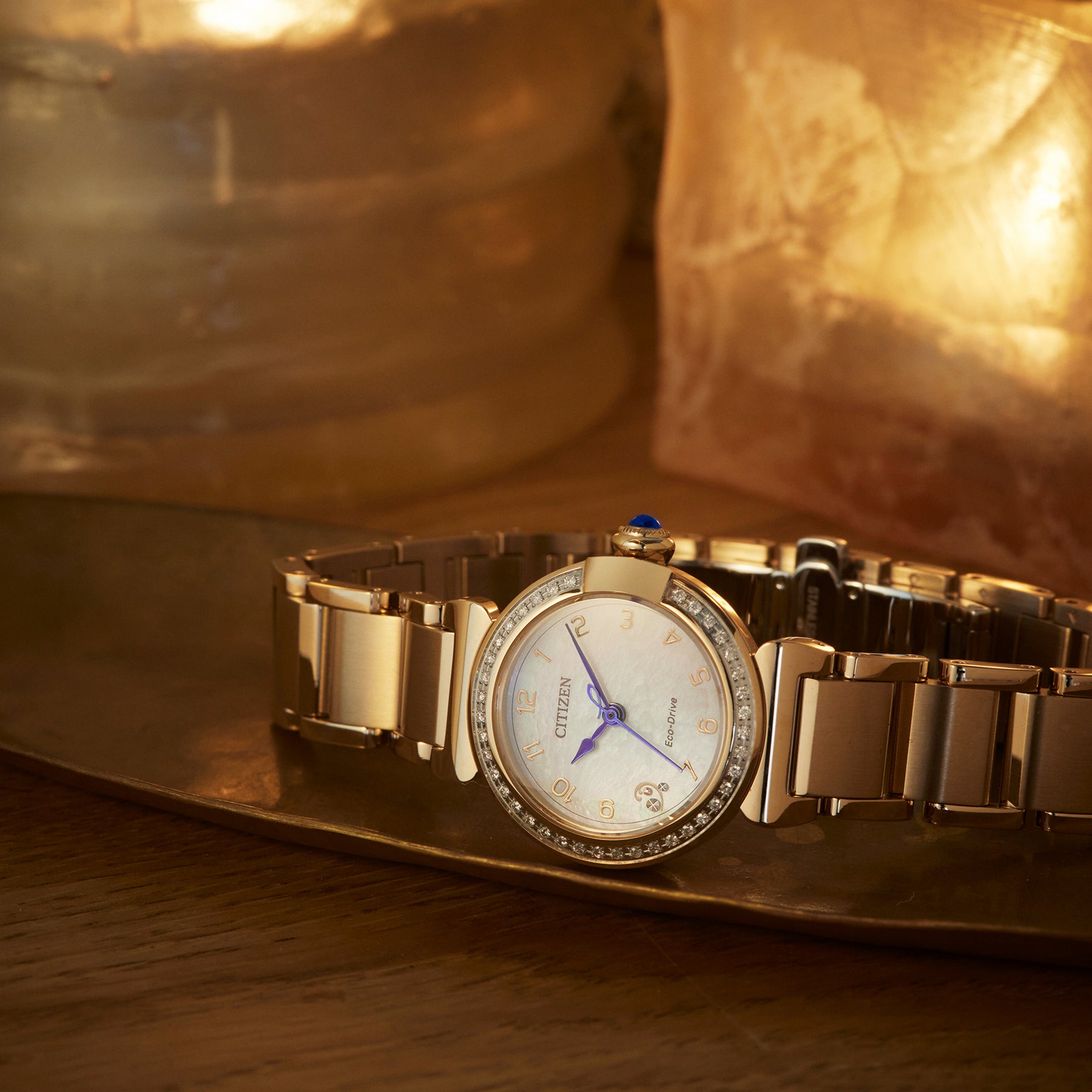Classic lines and hints of romance make this newest timepiece to our women’s collection, the Citizen L May Bells Mini, a glamorous addition of sustainable luxury. With a 26mm case design inspired by a vintage perfume bottle and featuring the curved, sleek lines of May bells, the diamond-set bezel shape has a distinct feature at the 3 o’clock position, where the crown resembles an elegant perfume stopper.