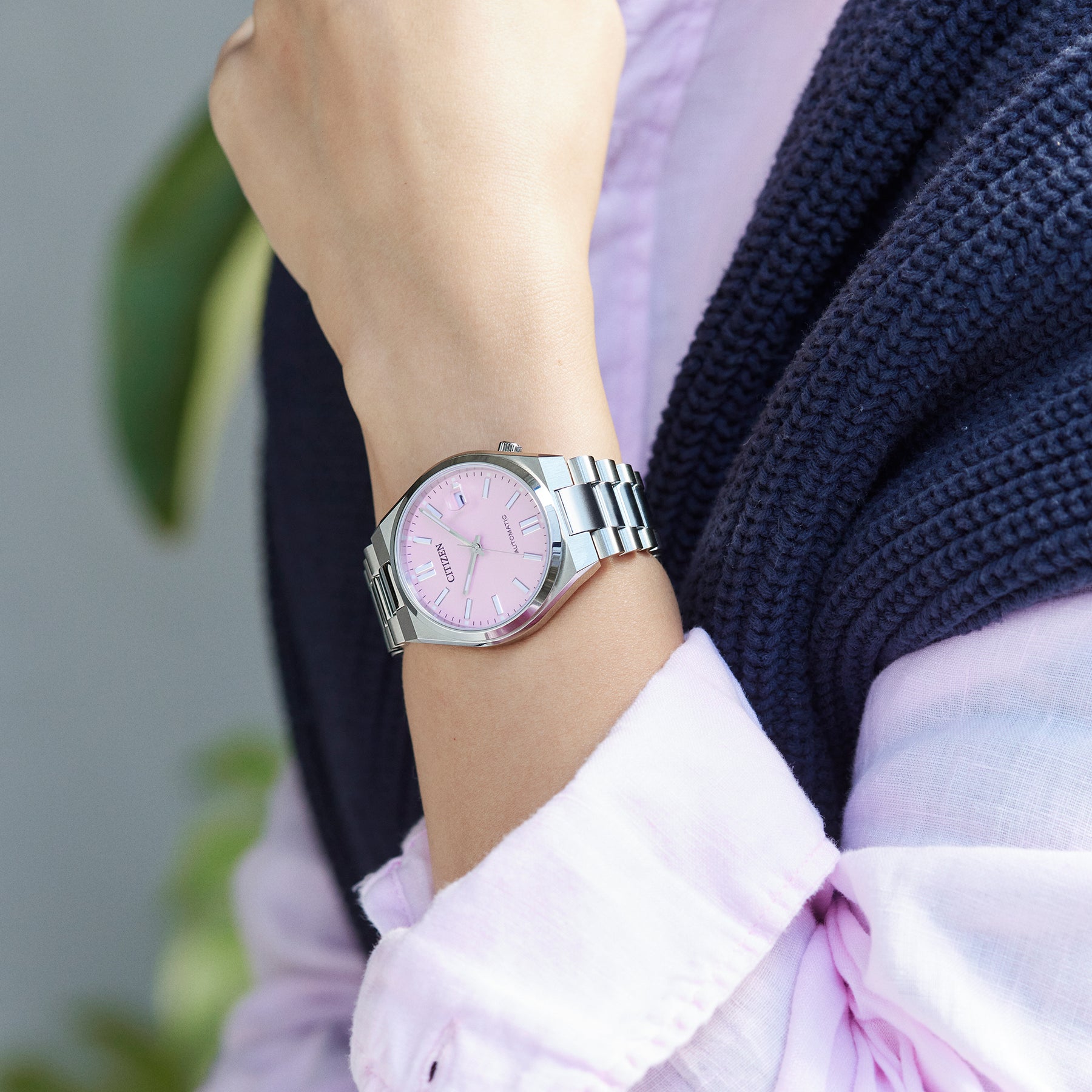 A modern evolution of a beloved classic, the Citizen Tsuyosa 37mm NJ0200-50L carries forward the legacy of Citizen’s mechanical watchmaking. Its roots trace back to the NH299 series—one of the brand’s best-selling mechanical lines in the late 1990s and early 2000s. In 2022, TSUYOSA revitalized this design with a fresh, contemporary look, and now in 2025, the TSUYOSA 37mm refines it further, offering a sleeker 37 mm case, making it 3 mm smaller than the 40 mm TSUYOSA while maintaining the same bold appeal.