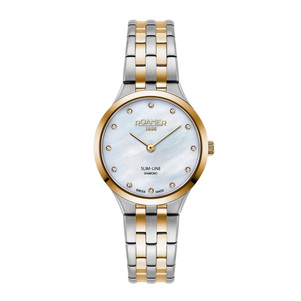 [{"id":43765467054173,"title":"Mother of Pearl \/ Two-tone SS + YG \/ 26 mm","option1":"Mother of Pearl","option2":"Two-tone SS + YG","option3":"26 mm","sku":"RM-512847478920","requires_shipping":true,"taxable":false,"featured_image":null,"available":true,"name":"ROAMER Slim-line Diamond Ladies Quartz Watch - Mother of Pearl \/ Two-tone SS + YG \/ 26 mm","public_title":"Mother of Pearl \/ Two-tone SS + YG \/ 26 mm","options":["Mother of Pearl","Two-tone SS + YG","26 mm"],"price":174500,"weight":95,"compare_at_price":null,"inventory_management":"shopify","barcode":"7640185787308","requires_selling_plan":false,"selling_plan_allocations":[],"quantity_rule":{"min":1,"max":null,"increment":1}}]