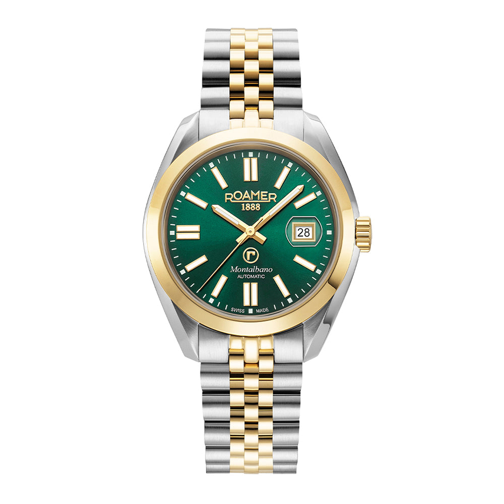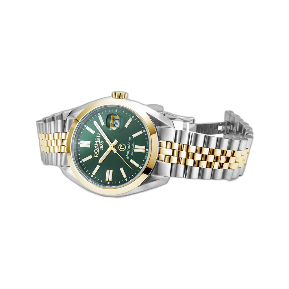 {"id":43765467512925,"title":"Green \/ Two-tone SS + YG \/ 41.5 mm","option1":"Green","option2":"Two-tone SS + YG","option3":"41.5 mm","sku":"RM-996983477520","requires_shipping":true,"taxable":false,"featured_image":null,"available":true,"name":"ROAMER Montalbano 41.5mm Automatic Gents Watch - Green \/ Two-tone SS + YG \/ 41.5 mm","public_title":"Green \/ Two-tone SS + YG \/ 41.5 mm","options":["Green","Two-tone SS + YG","41.5 mm"],"price":363500,"weight":150,"compare_at_price":null,"inventory_management":"shopify","barcode":"7640359883225","requires_selling_plan":false,"selling_plan_allocations":[],"quantity_rule":{"min":1,"max":null,"increment":1}}