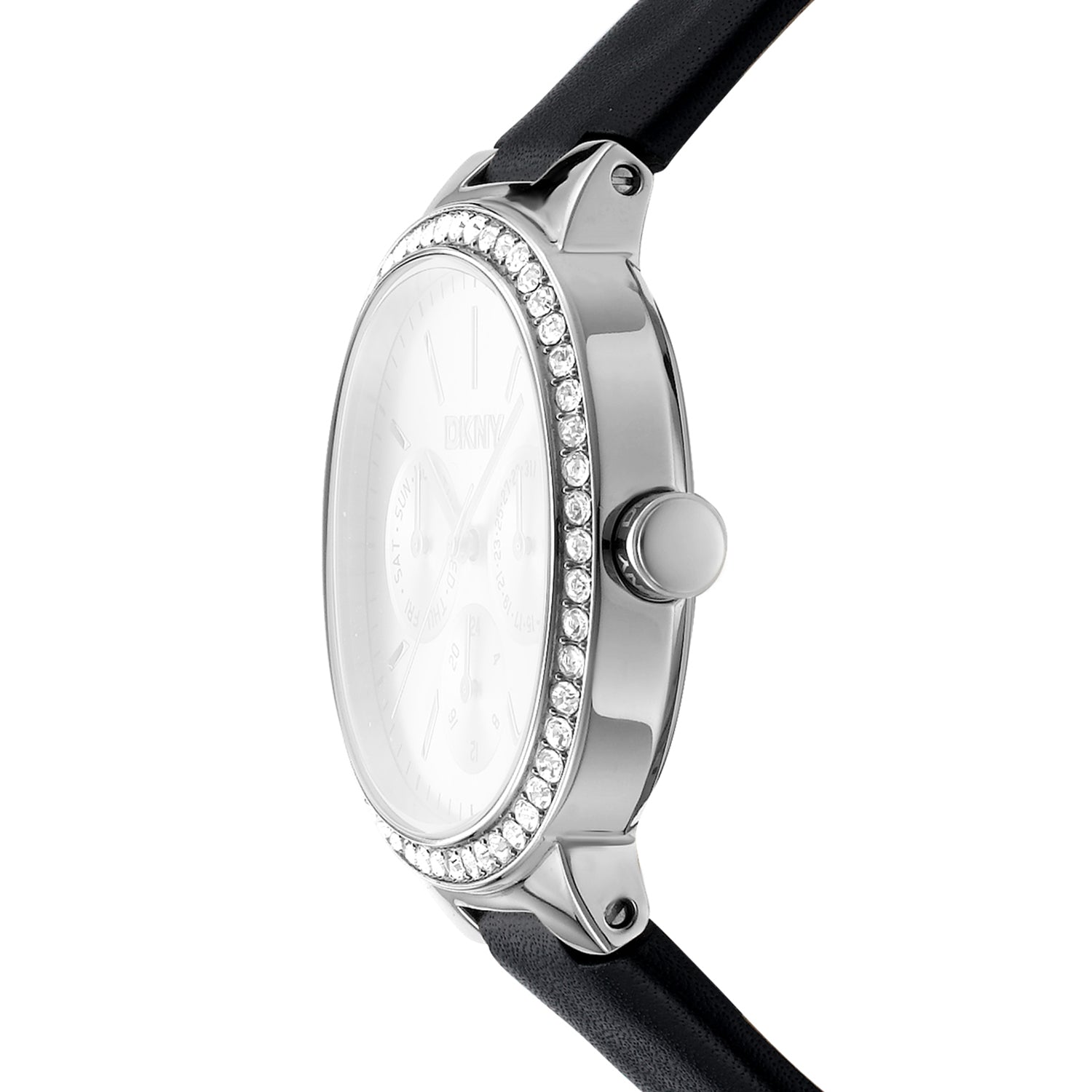 DKNY EVENING Women's Silver Dial Leather Strap ...