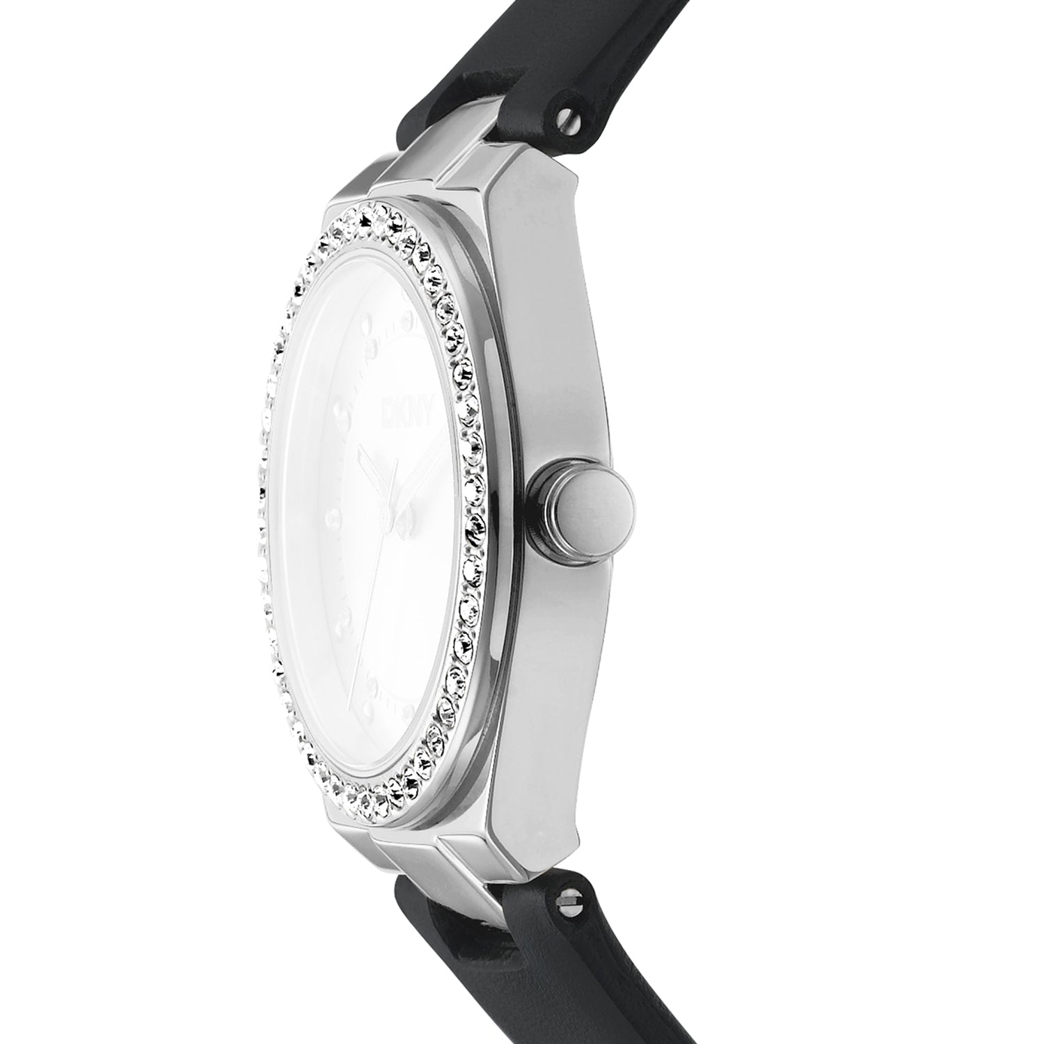 DKNY EVENING Women's Silver Dial Leather Strap ...